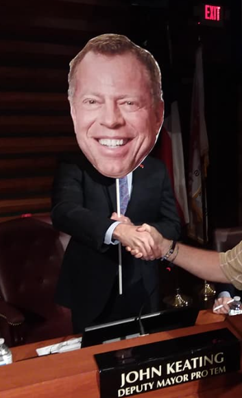 Frisco Chronicles: Bill, what about the time (during a meeting) when Councilman Keating held up a big picture on a stick of his face – you didn’t seem outraged then by the whimsy fun? What happens after a meeting is over offends you?