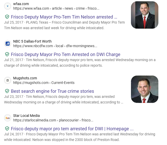 In 2017, Deputy Mayor Pro Tem Tim Nelson was arrested and charged with driving while intoxicated after a traffic stop where police alleged, he was swerving across lanes on a highway. Allegedly the incident occurred shortly after his wife was arrested for allegedly for assault bodily injury family violence.