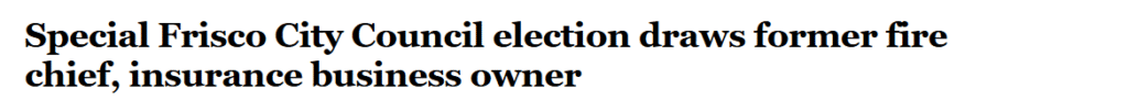 Angela Mathew over at the Dallas Morning News just dropped her article on Frisco’s special election — and folks, it reads like someone jogging behind the Cheney Cabal holding an umbrella. The headline tries to throw one candidate under the bus, but it’s so weak it couldn’t dent a cardboard cutout. Creativity? Original thought? Not today, apparently.